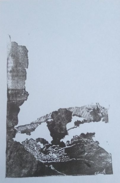 Au cours d’une balade dans les Mourres, Luberon, au mois d’avril, j’ai pris un moment pour faire quelques croquis de ces rochers insolites. L’occasion de faire ensuite une petite linogravure à partir de mes croquis.